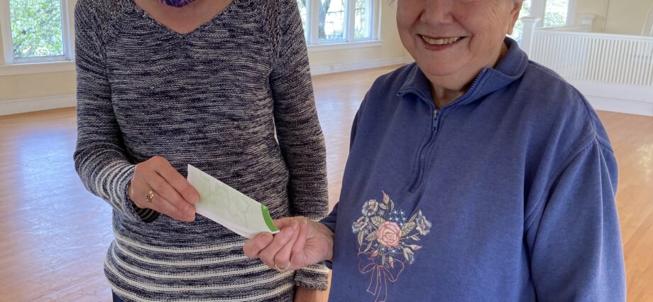 At right, Leah Cooper (left) receives a donation from the Moseley Foundation presented by Imogene Bass, board member and secretary of the Moseley Foundation