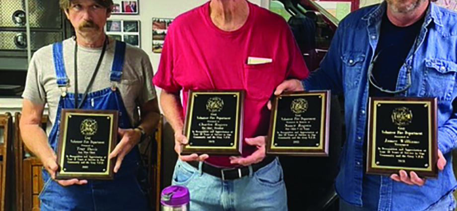 Service Awards were recently awarded to the members of the Gray Volunteer Fire Department. Left, Tray David celebrated 31 years of service. Center, former department chief Charles Rogers was recognized for 30 years. Right, Jim Williams has logged 28 years of service. Roger’s wife, Nancy, was also recognized, posthumously, for her decades of service.