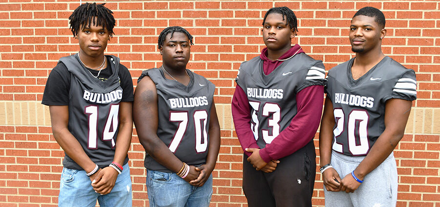 The Jefferson Bulldogs were well represented on the District 6-3A Second Team roster. From left, senior Hasheem Ector, Second Team Defensive Backs; senior Devonta Waites, Second Team Defensive Lineman; senior Jacobie Goynes, Second Team Offensive Lineman; and senior Datravion Smith, Second Team Linebacker. Not pictured are sophomore Chris Love, Second Team Receiver; junior Travis Harris, Jr., Second Team Defensive Lineman; and senior Steve Washington, Second Team Linebacker.