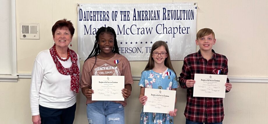 Jefferson area students recently participated in the National Society Daughters of the American Revolution essay contest. Essays were submitted and judged by members of the Martha McGraw Chapter in Jefferson.