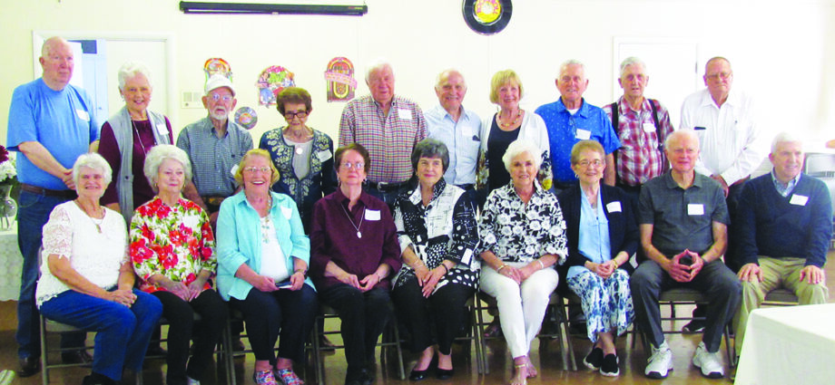 The Jefferson High School class of 1960 held a class reunion Saturday in Jefferson. Attendees were, seated from left, Pat Day George, Anita Smith Perot, Jessica Tolleson Watson, Robbie Knight Fortune, Betty Lou Ford, Julia Meisenheimer McElvy, Sammie Stafford Bower, Ned Allen Ford and Earnest Allen, Jr., Standing, from left, Lawrence (Larry) Crutcher, Sherilyn Bailey Johnston, Lewis Carroll Robinson, Pamela McCasland, Bennie Davis, Russell Cooner, Ronnie Hall, Davis Goode, Lee Ben Bramlett, Gene Nelms and Johnny Dale Nelson.