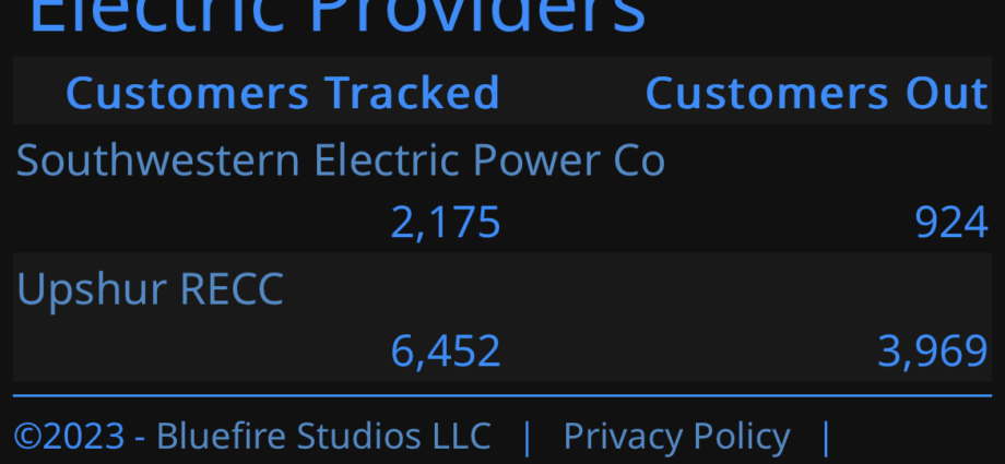 By 4p the percentage without power had grown to 58%. With SWEPCO accounting for 1,000 and URECC with 3,942 outages.