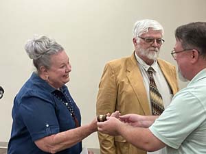 Before handing over the gavel Baker provided a quick update on the Lead Pipe Project. He said the Water Development Board has started th due diligence portion of the program and that the project is a low-interest loan with a forgivable portion. It will fund the replacement of the remaining lead water pipes in town, from the City portion all the way to the homeowner. A study will be being conducted to identify what homes are affected.