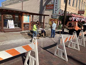 Workers sought out a broken water line, which has been flooding the General Store for 2.5 years, near the Chamber this week. The leak was found and fixed, and now new sidewalks are being poured.