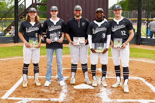 Above, senior members of the Jefferson High School baseball team were honored Monday at Senior Night. From left, Baylor Varnell, Trent Foster, head coach Tyler Foster, Dameon Warren and Alex Romano. Continue Reading