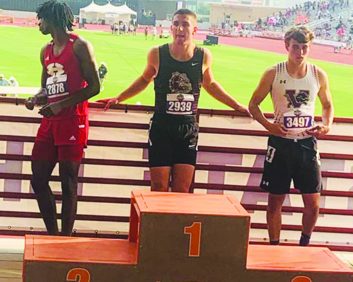 Jefferson High School senior Luke McMullen (center) prepares to take to the winners’ podium after he placed 1st in the 100m dash with a time of 10.51 and 1st in the 200m dash with a time of 21.23 last weeka the UIL State Track Meet in Austin .Continue Reading